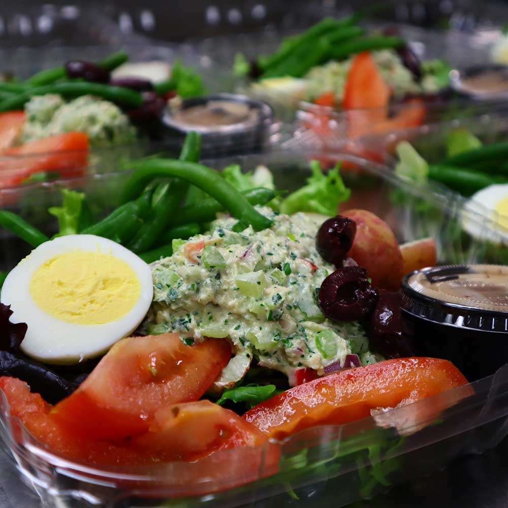 housemade, hand-tossed selections available in quantities of 3, 5 or 7 lbs. ¼ lb per person is recommended, charge for bowls and spoons will apply.